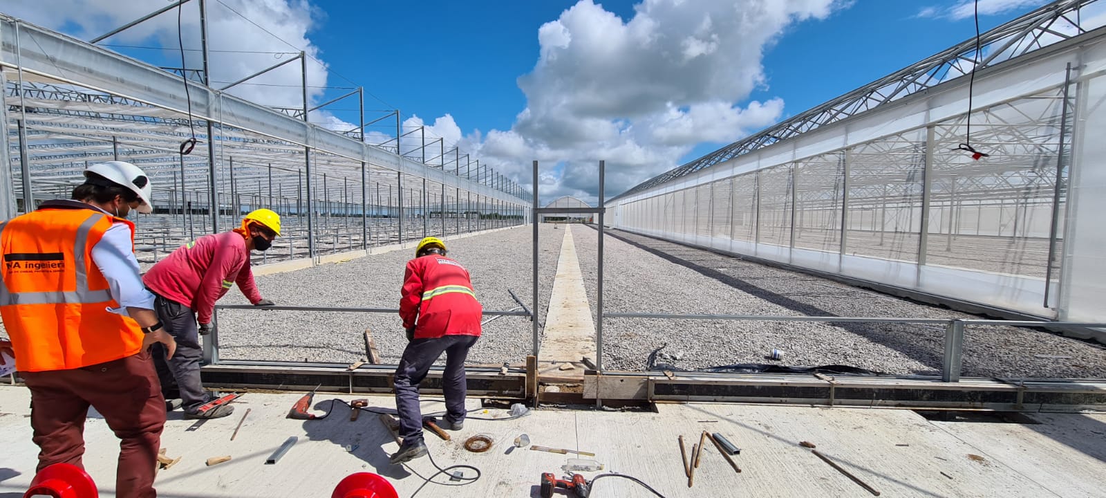 Assembly of the greenhouses (37,000m2 covered) was carried out, which will house the future trees for the UPM pulp mills. Within the ambitious project, we also carry out other tasks such as: - Foundations and concrete perimeter beams - Motors and wiring - Suspended supports for the irrigation system - Plastic linings, openings, and shading system (shade mesh)